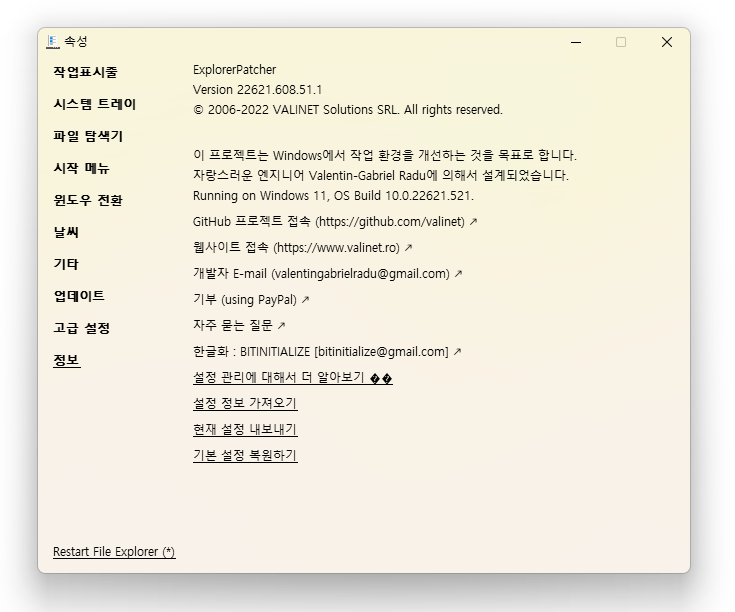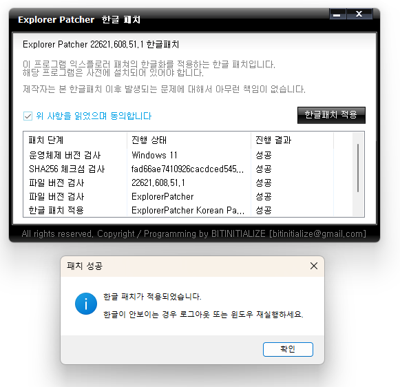 ExplorerPatcher 22621.608.51.1 한글 패치를 소개합니다.